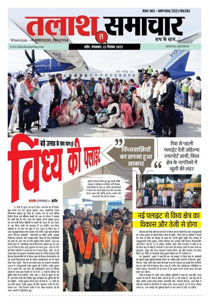 रीवा-इंदौर विमान सेवा का शुभारंभ 22 दिसंबर को